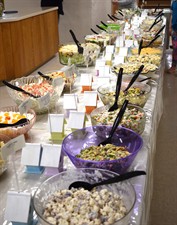 Serving dozens of meat, veggie and fruit salads along with bread, beverages and of course, pie. Everything is homemade by our dedicated members and we know you will not go home hungry.